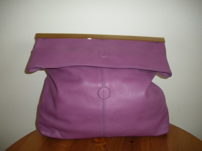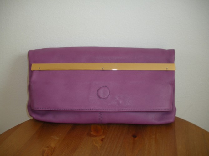 натуральная кожа (2500 крон, это цена уже по скидке), лиловый вместительный клатч — тоже натуральная кожа, Италия,