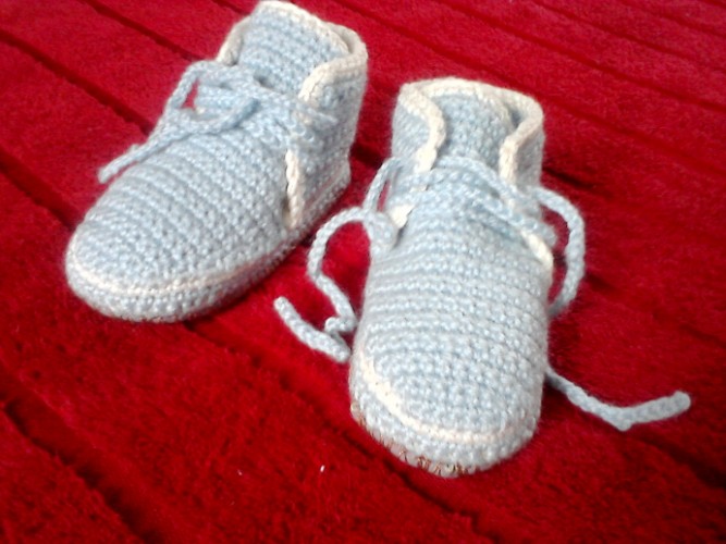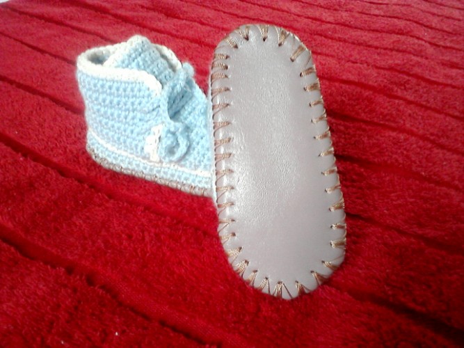 Детские пинетки -кедики. Материал- акрил, войлочная подошва, обшита кожей. Длина 13, 5 см.