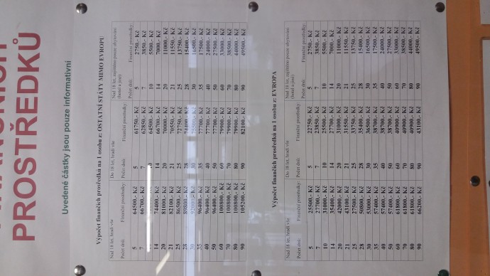 - 0, 5násobku částky existenčního minima na 1 den pobytu (u osoby činí částka existenčního minima 2.200 Kč měsíčně) stanovené v § 5 odst. 1 zákona č. 110/2006 Sb., o životním a existenčním minimu, jestliže tento pobyt nemá přesáhnout dobu 30 dnů,