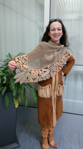 Шаль с элементами ирландского кружева. Ручная работа. Размер 155 х 78. Состав 95%- хлопок, 5%- полиамид. Цена 3000 крон