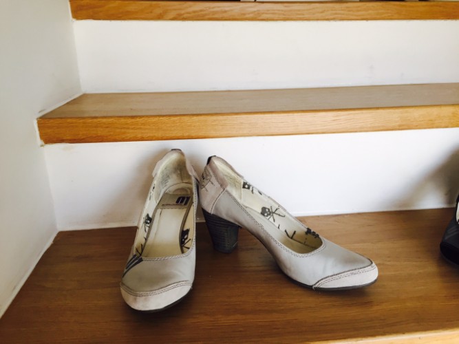 1. Кожа, одеты 2-3 раза, в идеальном состоянии, 38 размер, но скорее ближе к 39, 200 крон.