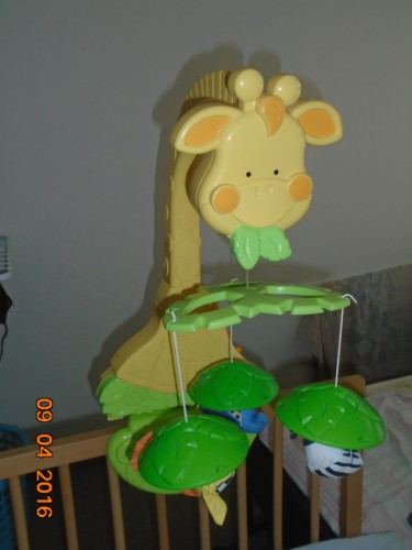 Отдам мобиль на батарейках и штаны-капри для беременных размер 48, штаны велюровые, без пятен (тут дефект фото)