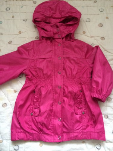 Плащ очень красивый, ярко-розового цвета. Капюшон отстегивается.