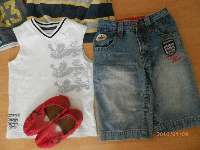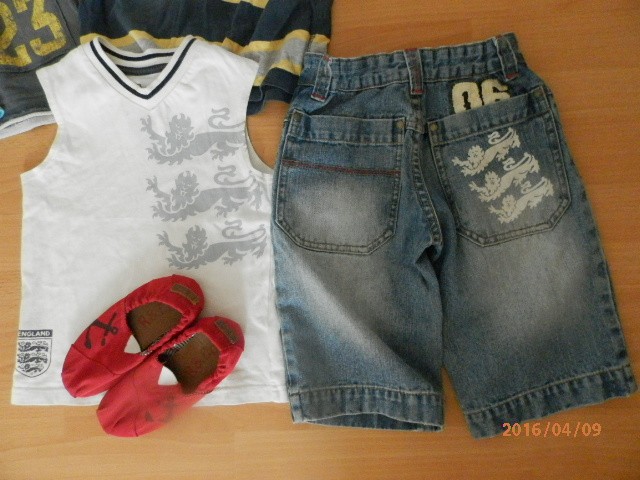 Размеры комплекта фото 1 и 2 и 3. Кому перевести спрашивайте, не охота перепечатывать по русски просто, а по-чешски были замеры. RIFLE DŽINY ZE SPADLÝM SEDEM ZN. POMP DE LUX VE.4 ROKY, VYDŘÍ I DÝL. DÉLKA 62CM, PAS REGULACE. BUNDA NEXT VEL.104. VYDŘÍ DELŠÍ, DÉLKA 47CM, RUKÁV OD LÍMCE 50CM. KOTNÍKOVÉ BOTKY NEXT VEL.UK 11, DÉLKA VNIT. STÉLKY CCA 19-19, 5CM. KOŠILE RIFLOVÁ ZN. URBAN VEL.5-6LET DÉLKA 47CM, RUKÁV OD LÍMCE 50CM. KRATASY S KŠANDAMI. ZN. DENIM CO VEL. 4-5LET, 110, PAS REGULACE, DÉLKA 37. Bekovka stylová dětská vel. pro obvod 53cm/54. Vhodná od velikosti 116 do vel.128. DOVOZ UK. VŠECHNĚ VĚCIČKY JSOU V SUPER STAVU, JAKO NOVÉ. VELIKOSTNĚ VYDŘÍ AŽ DO 6LET.