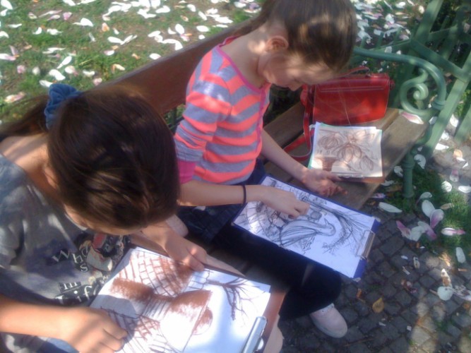В апреле и мае занятия самые интересные: как только устанавливается хорошая погода мы выходим на пленеры: рисуем Прагу! Красивая архитектура, цветущие деревья, животные , случайные прохожие, а еще парки и уличные кафе! Ну, а если с погодой не повезет, нам всегда есть чем заняться в студии: тема занятий в апреле: животные Пражского зоопарка. Техника исполнения: акварель, темперные краски, пастель, карандаши и даже линогравюра. Для художников постарше: задания по академической методике (натюрморт, портрет, пейзаж) также навыки фешн-иллюстрации и гравюры.