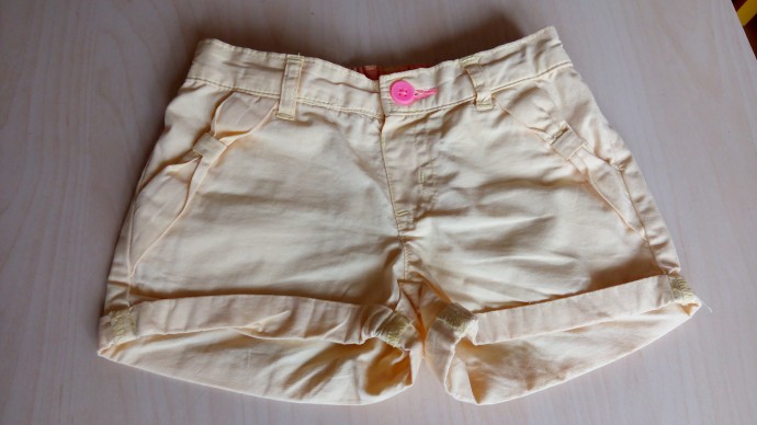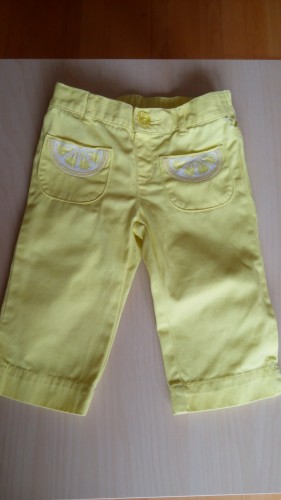 Бриджи Gymboree, р.3 года — та же ситуация, спадали, т.к. нет «утяжки» -подойдут на плотненького ребенка. Хлопок 100%, материал по типу джинсы. Цвет ярко-желтый, намного ярче, чем на фото. Цена 70 крон