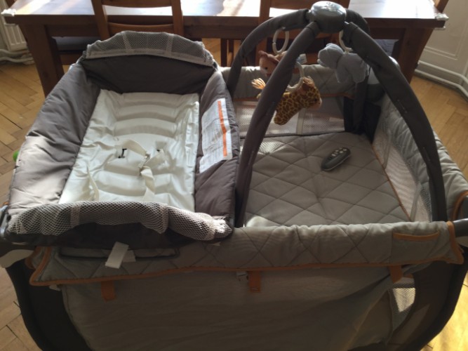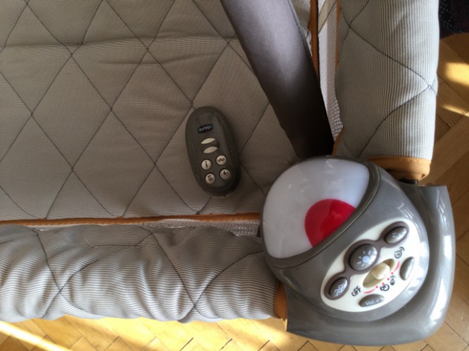 Продам манеж Chicco, состояние отличное, покупался новый за 250 $. Малышу в нем нравилось и спать и играть. Можно с помощью пульта включать мелодии, режим вибрации и лампочку, что очень удобно. Съемный пеленальный столик новый, не использовали. Сложить и разложить кроватку сможет любая мама. Матрасик с игрушками можно использовать на полу как игровой. Очень удобно с помощью колесиков из комнаты в комнату перевозить. Можно брать с собой в гости, на дачу, в путешествия. Продуманная кроватка. Все функционирует. Цвет песочный с коричневым, универсальный, и для девочек и для мальчиков подойдёт. Цена 2300 крон.