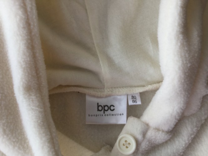 1.Кофточку заказывала с Bonprix за 329 крон+ почта. Не успели поносить, мала уже. Этикетку срезала. Не стиранная. Материал флис, капюшон подшит х/ б. Мягкая, с забавным медвежонком. Длина 36 см, ширина 30 см, длина рукава от шеи 34 см.Цена 200 крон.