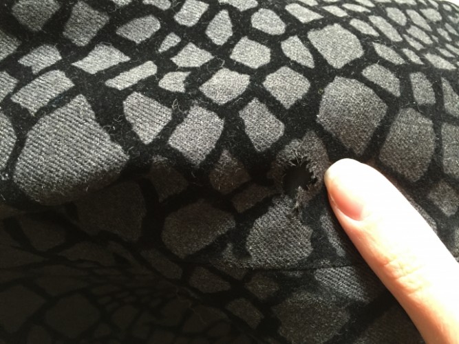 Но на левом рукаве на внутренней стороне небольшая дырочка в верхней ткани (подкладка целая), умелые руки поправят.