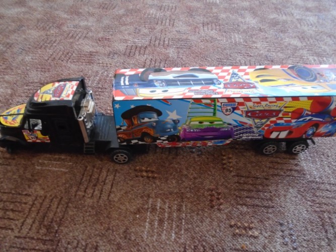 1. Камион з 12 машинками. Все целое, толко соединения между ними — потеряны. В принципе, дома всегда что-то подобного найдется, чем соединить. Или я придумаю, как сделать. Все машинки целые, они снимаются с болших машин и можно отделно играть. 200 Крон