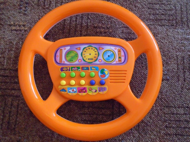 10.Руль музикалный. 150 Крон. Он вертится разные стороны, как настоящий руль. Зеркало, передачи можно pereklyuchatь.