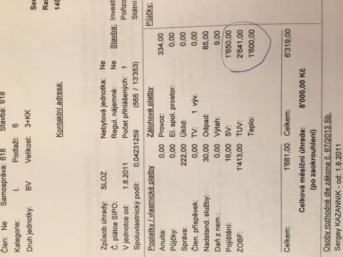 Потом в Пржибраме были платежи 3, 8 за двушку. Мы рассчитывали, что нам вернут переплату, потому что отопление мы не включали вообще. Но по правилам этого ТСЖ за нулевой расход полагается не возврат переплаты, а штраф в размере 65% годовой оплаты за отопление. В плюс к залогам. А если перерасход, то включается льготный тариф, и получается дешевле базового платежа. Такое вот извращение.