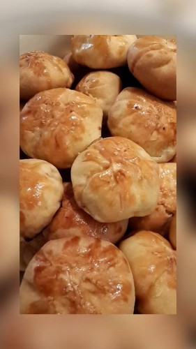 Рецепт: Пачку маргарина-через терку, 3 стакана муки, 1 стакан кефира, 1 ч.ложка разрыхлителя, 1 яйцо. Замешиваем мягкое тесто. Начинка: 0, 5 кг фарша (или рубленого мяса), 6 больших картофелин, 1 большая луковица, специи по вкусу и немного молока или газированой воды. Формируем самсушки, сверху желток и семена кунжута