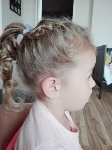 Это в основном то, что делаю быстро и каждый день. Первый вариант по душе мне и ей, ничего не торчит и не мешает, сама может добавить потом заколку какую. На танцах ещё так делала