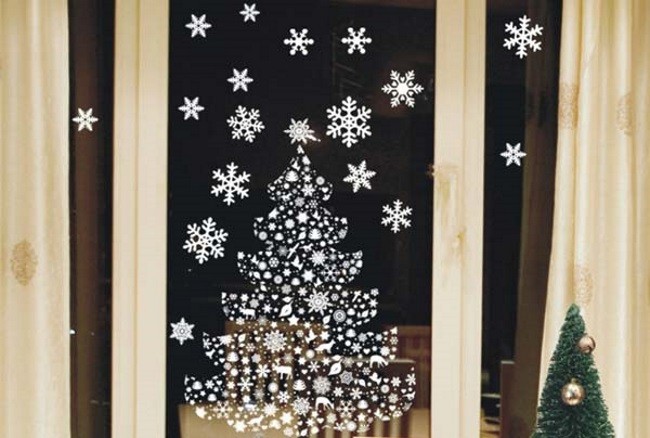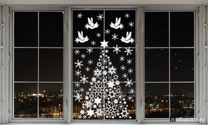 Есть еще один вариант: елочка на окне из бумажных снежинок. Мне нравится безумно!