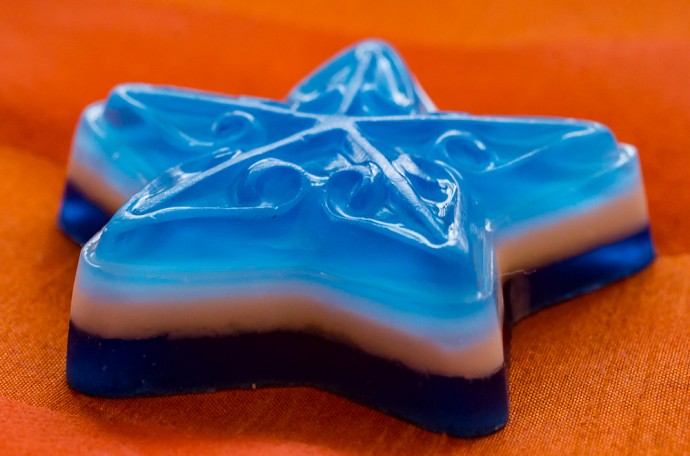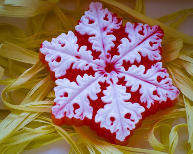 Я тоже решилась показать одно из моих хобби -мыло ручной работы.Цвета только немного искажены, варежка фиолетового цвета.