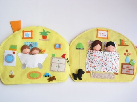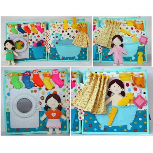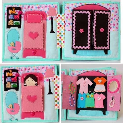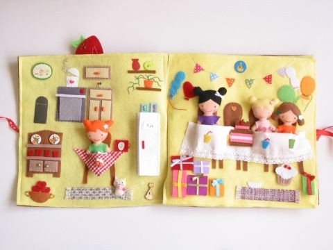 Люблю эти книжечки) и делать их интересно) Если собирать игрушки ручными стежками и вырезать из фетра, то можно и сразу вырезанные детали собирать, не обязательно сначала сшивать, у меня так даже ровнее получается)). Последние две куколки — это машинная вышивка. Сами выкройки развивающих игрушек можно купить или бесплатно скачать на сайте shillopop.com, Женя Ершова, автор сайта, так же рассказывает про игры с такими игрушками. Я еще люблю японские выкройки из фетра, у них игрушки просто мимимишные ;) они в интернете свободно выложены многие.