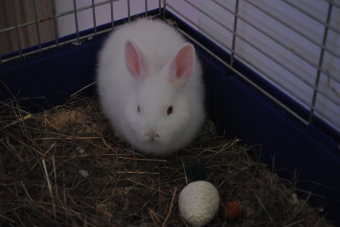 Вчера мы стали счастливыми обладателями вот такого белого чуда. Чудо немного пугливое, но смышленое. И очень хорошенькое! Двое сереньких карликовых зайчат еще не нашли хозяина.