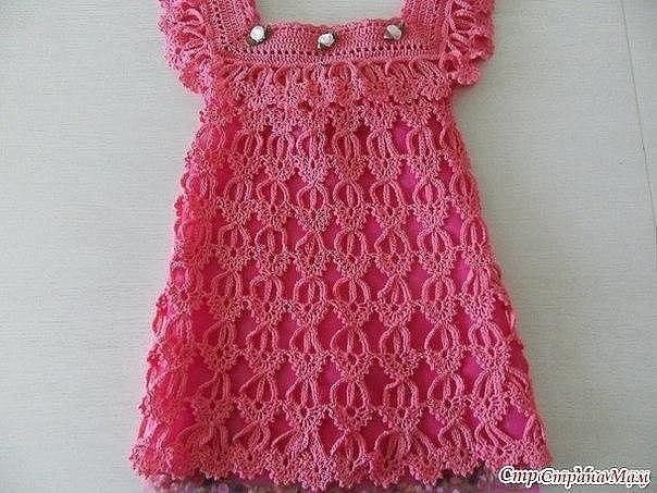 Платье ,вязанное крючком, захотелось связать))) симпатичное такое. Спасибо)