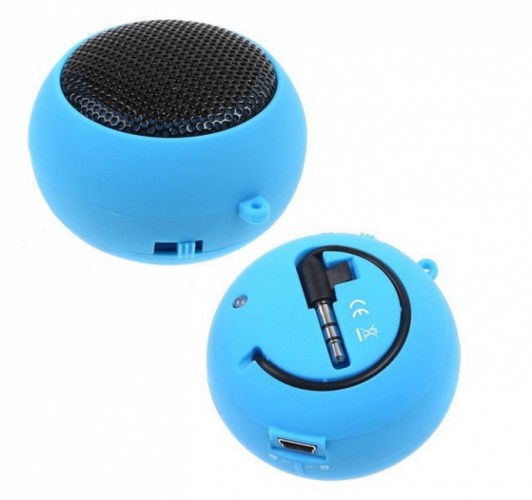 Я иногда пользуюсь мини колонкой, ее ко всему можно подключить (плеер, комп, телефон). Заряжается от USB, хватает на несколько часов. Цена — копеечная. А если их несколько, то их можно соединить между собой в цепочку, будет громче :-).