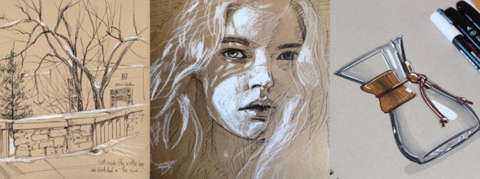 Третье. Скетчинг – это авангард. Все самые современные материалы – водные, спиртовые, пигментные маркеры, десятки виды карандашей, ручек, линеров и брашпенов – все это для него!