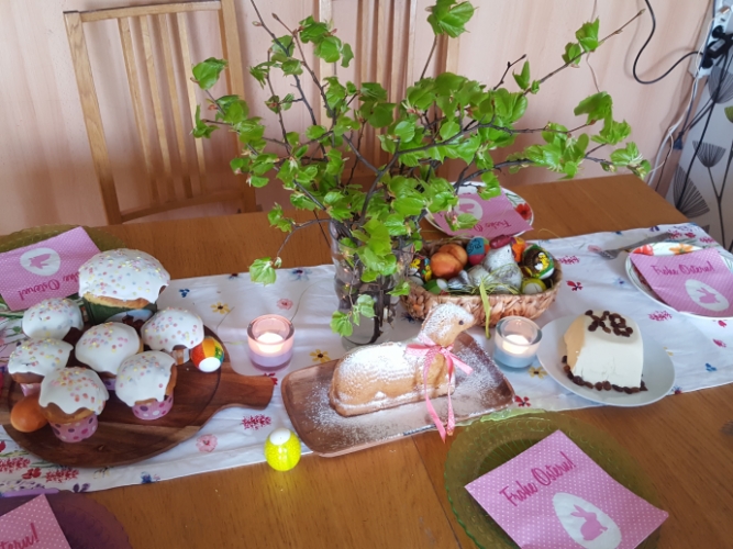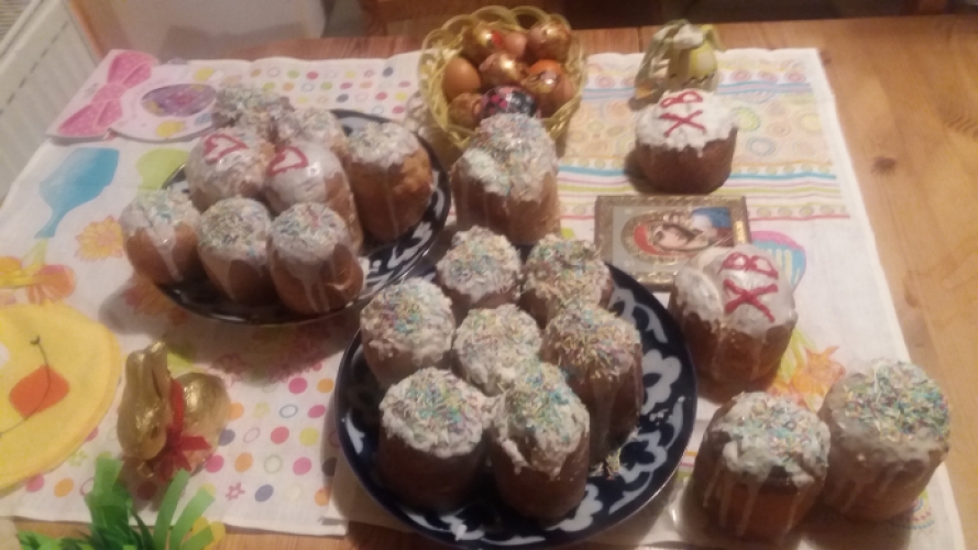 А кулич печь и яички красить будем завтра !)))У нас куличи , творожная пасха, и чешский беранек