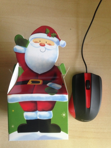 Вот такие, мышка для масштаба ;) Были еще снеговик и белый медведь. В наборе 4 одинаковых коробочки, которые надо самим собрать, один набор 29 крон. В коробочку поместится пара киндеров и несколько конфет.