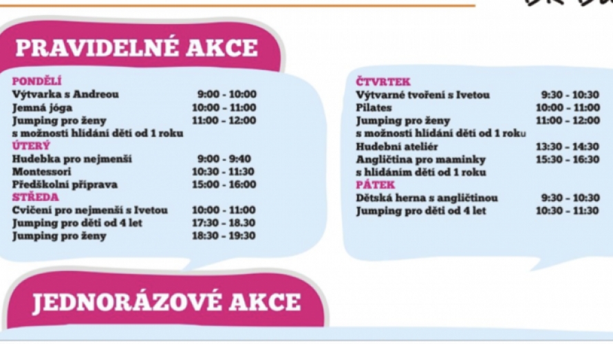 Вот все занятия, может кому то пригодится. Таких детских центров в Праге 8 несколько, вся информация есть на сайте)))Спасибо