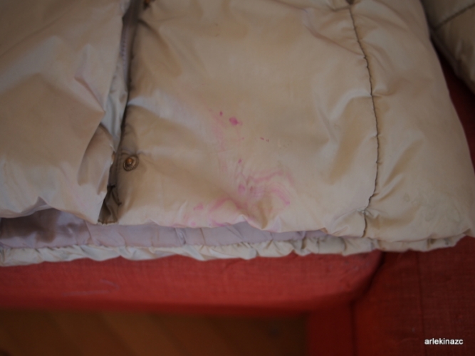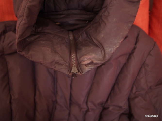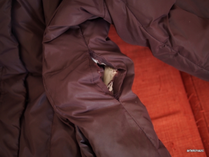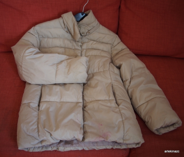 7. И зимний пуховик на маму. Размер 2XL. Состояние- боевое. Но действительно натуральный пух. Гулять зимой с детьми. Опять таки на дачу. Вся проблема в пуховике в том- что есть в одном месте разошелся по шву, и надо почистить воротник от помады. Цена — 200 крон.