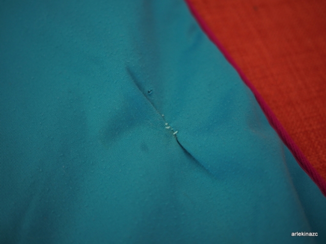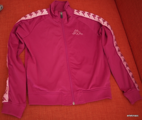 4. Спортивный костюм. Состояние- школа в природе, дружина, дача. Курточка — хорошая. А вот на штанах маленькая дырочка. ( ребенок гордо зашивал!). На рост 152 см. Цена — 80 крон.