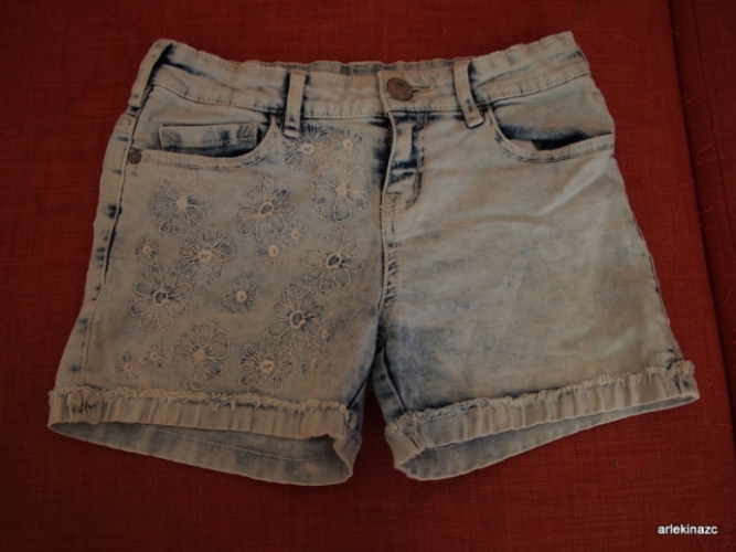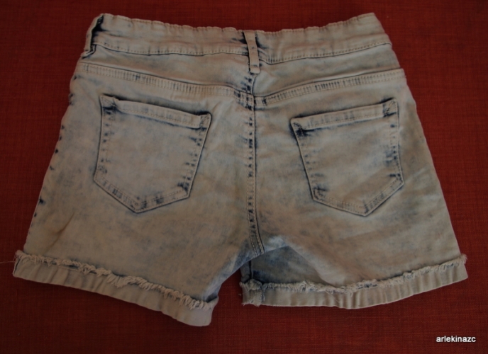 3. Шорты. В хорошем состоянии. Маленькое пятно, сзади — наверное как лежало в покете, есть пятно. Рост — 152 см. Цена — 50 крон.