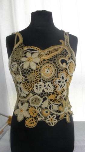 чудесно=) у вас очень много терпения и усидчтвости! я тоже все мечтаю попробовать=) А если к топу пришить юбку в пол из легкой ткани одного ищ отттенков топа? выйдет обалденное платье.