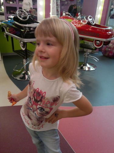 Была там и с дочкой, и с сыном! Сынок орал как обычно) правда помимо того, что посадили в автомобиль, еще дали выбрать мультик, там телек прямо у зеркала, и помощница парикмахера плясали вокруг, давала разные игрухи и пускала мыльные пузыри)) подстригли отлично в итоге! А дочку ужасно и криво обкрамсали, до сих пор отрастаем( но я без претензий:) у самой руки не там растут, поэтому пока остановимся на этой парикмахерской! Хочется, чтобы детки привыкли к месту и перестали бояться!