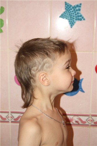Даже если посмотреть на фотки детей в модных журналах, например, где нибудь видела эрокезы, хвостики, выбритости у мальчиков? Нет их там, только хорошо уложенные «мужские» прически.