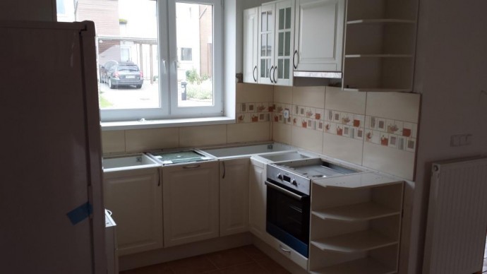 Первые две еще без столешницы, но зато хорошо видна вся кухня.