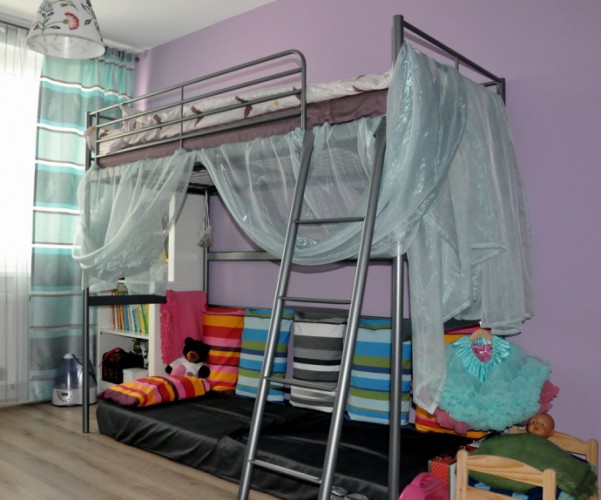 У нас ребенок мечтал три года о кровати с лестницей. Купили к пяти годам (раньше просто не было возможности и и места для нее). Сделали вот такую: верх для сна, низ для игр и чтения. Дочь счастлива ;) и театр, в принцесс играем ;)