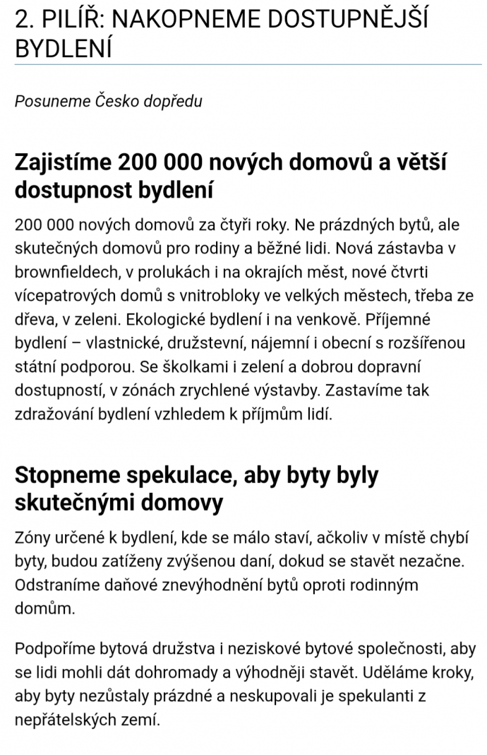 То что вы перечислили уже есть и пиратов для этого избирать не надо ... Но вот «мы построим хренову тучу доступного жилья » — считаю недостижимой мечтой — не понятно где собираются строить(земля), на что (средства) и кому далу подряд (откаты). А если вспомнить ещё и stavební řízení... Так по поводу строительства пиратам стоит вообще молчать )))