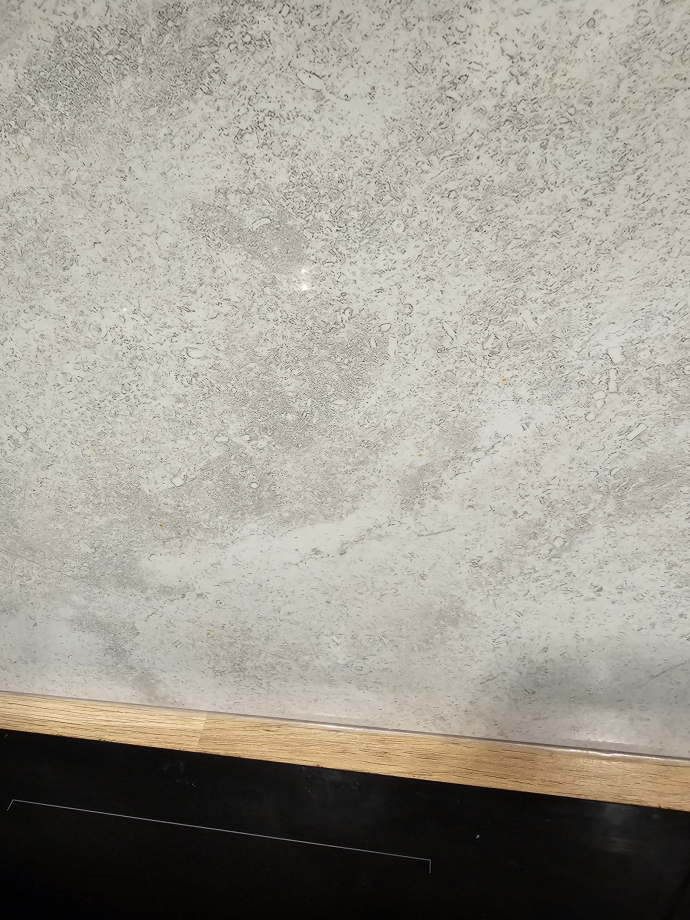 Эта плитка очень тяжелая, мастер под нее устанавливал специальный поддерживающий профиль.