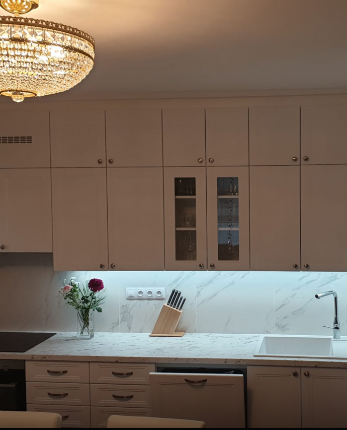 Помогите выбрать фартук на кухню! Вверх белый, низ светлое дерево, рабочая поверхность дерево темнее. Изначально выбрала ламинат в Икее, но сейчас понимаю что не подходит цвет. Теперь думаю делать плитку или ламинат. И если у вас есть хороший мастер? Кухня 2х2 ИКЕА посчитала за 13 твсяч