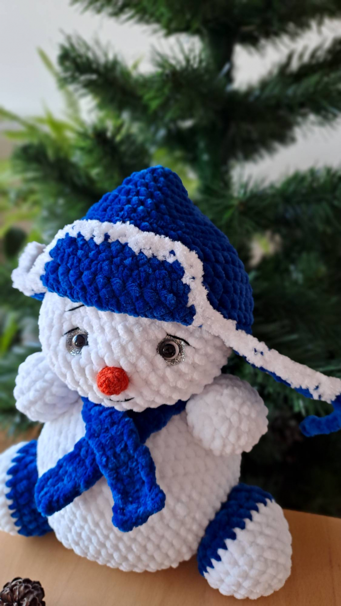 Снеговик в шапке пряжа YarnArt Dolce Baby. Высота 25 см. Цена 400 Kč.
