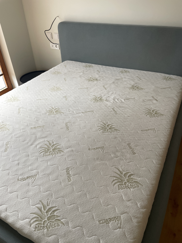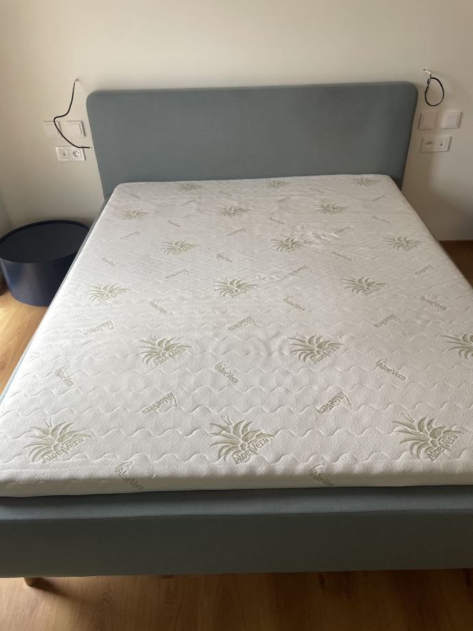 Продаю двуспальную кровать, спальное место 160 см на 200см в очень хорошем состоянии вместе с основанием и матрасом. Цвет серо-голубой.