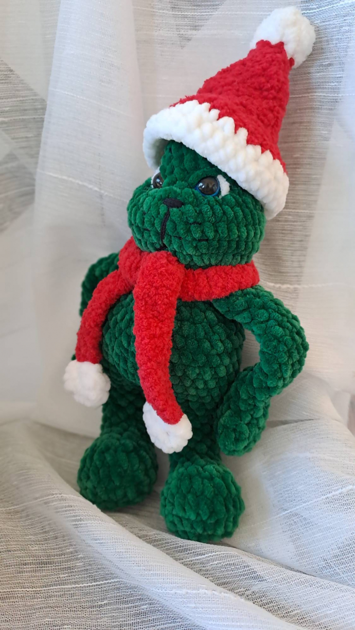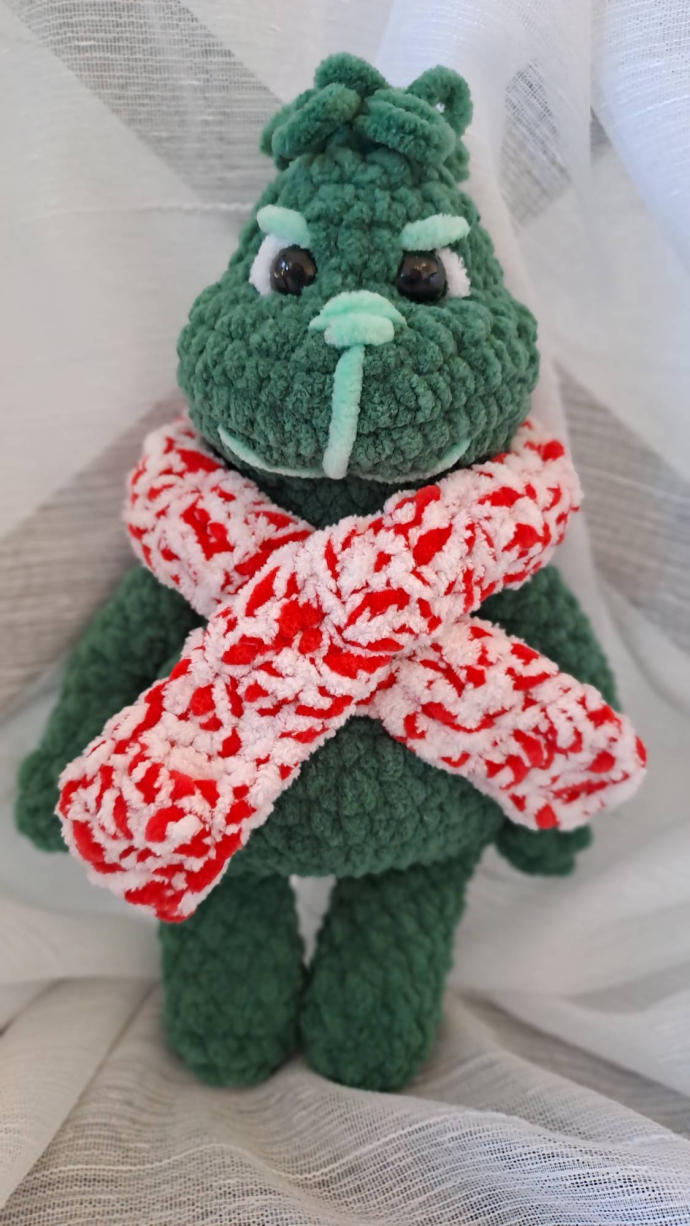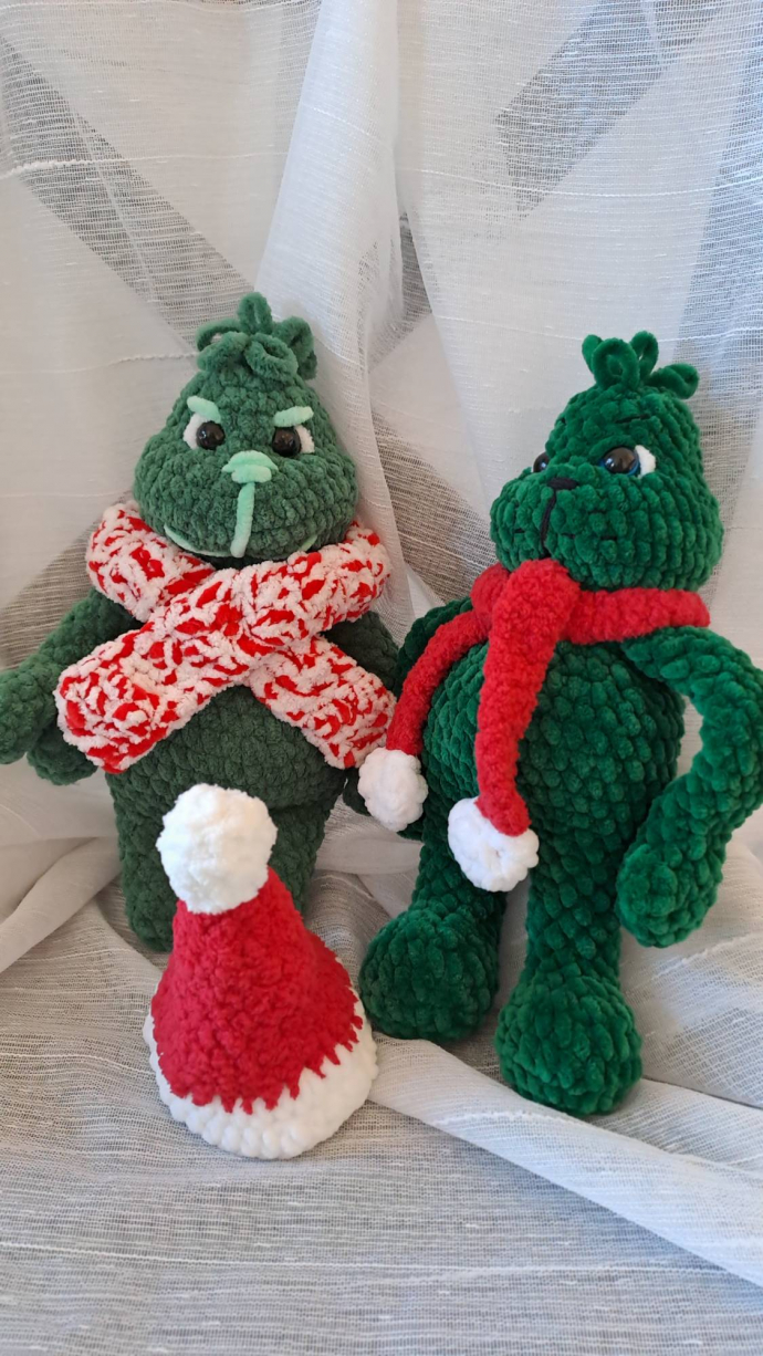 Продам мягкую игрушку Гринч с шарфом. Ручная работа из DolpfinBaby i Alize Velluto, шарф и шапка из Alize Puffy. Высота 26 см. Цена 350 Kč.