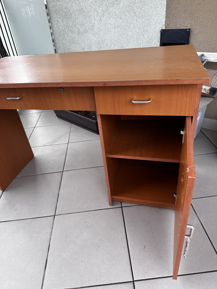 Отдам письменный стол. У длинного выдвижного ящика нет дна. Стол стоял на террасе под навесом, состояние среднее. Может, кому-то пригодится.
