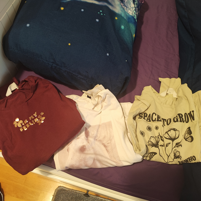 Вещи в отличном состоянии, только фиолетовые с пятном на коленке. Кофточки одеты пару раз(длинный рукав)10-12 лет. Книги всякие разные.Гурка