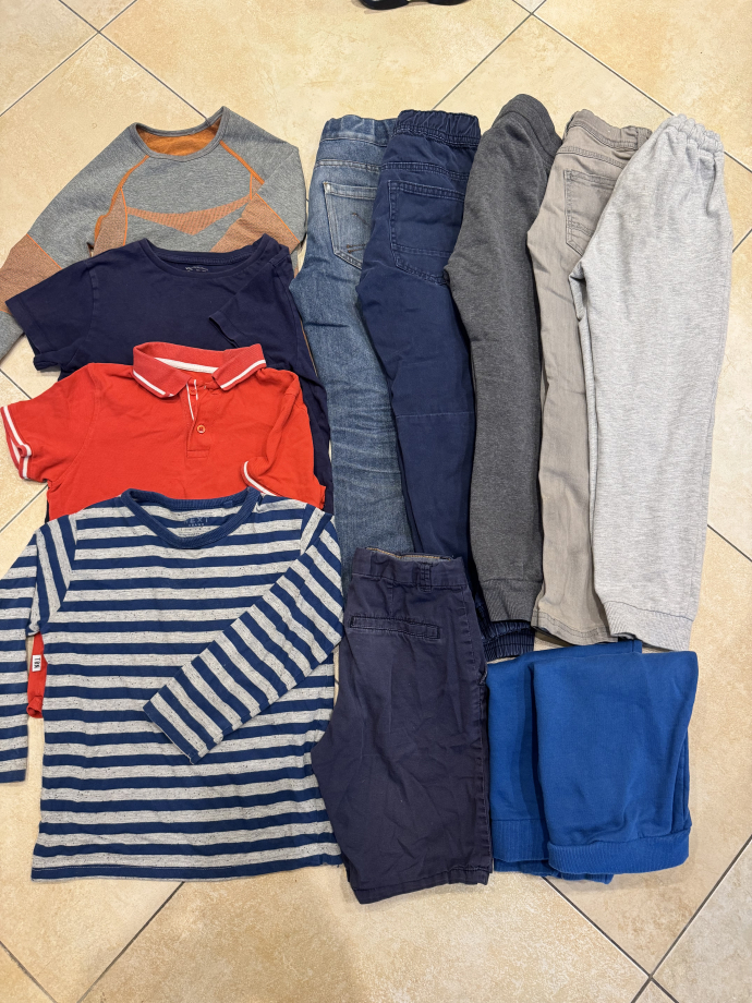 К штанам и сапожкам отдам пакет вещей (джинсы, спортивные штаны, шорты, термо, футболки). За все 250кч. Вышлю больше фото по запросу.