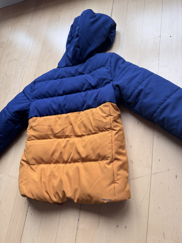 Она совершенно НОВАЯ. Красивая, мое фото не передает. Здесь больше инфо — https://www.decathlon.cz/p/detska-zimni-turisticka-prosivana-bunda/_/R-p-108905?mc=8944479