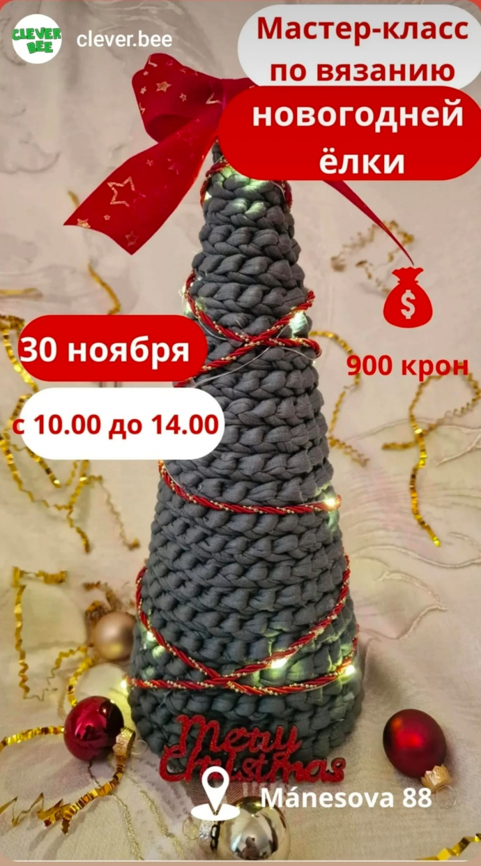 ✨ Дети выберут цвет ёлки (зелёный, белый или красный) свяжут, украсят игрушками и добавят огоньки.
