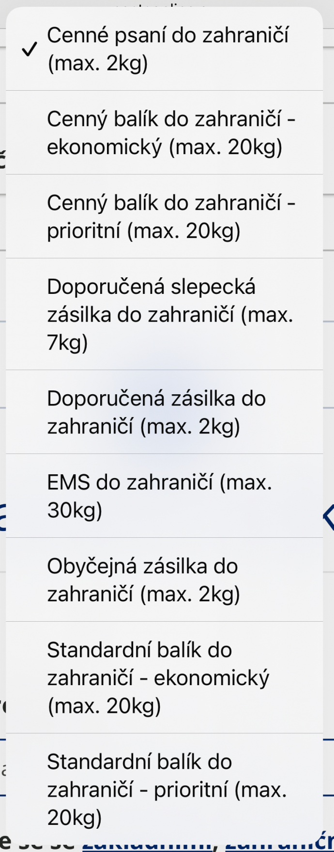 Посмотрите новые poštovní podmínky ... Они их вчера поменяли. В письме об этом изменении пишут, что вроде как введут другой продукт для товаров. Но вот вопрос когда, учитывая, что с августа и до сих пор не могут решить отмену de minimis в США из-за чего нельзя отправить товарные посылки туда вообще, кроме подарков... Так что новый продукт введут лет через 10 (((