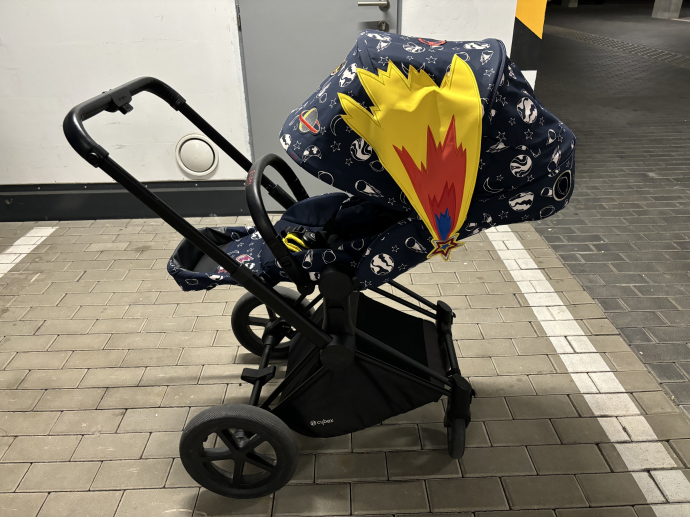В комплект входит люлька + прогулочный блок, совместимые с шасси Priam.