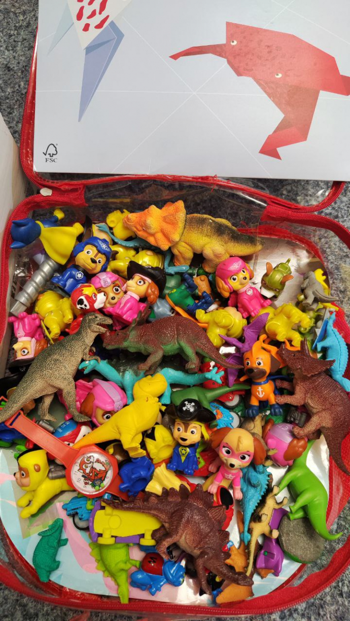 Коллекция фигурок «Собачий патруль » и динозаврики в рюкзаке. Плюс коробка фигурки Киндер.
